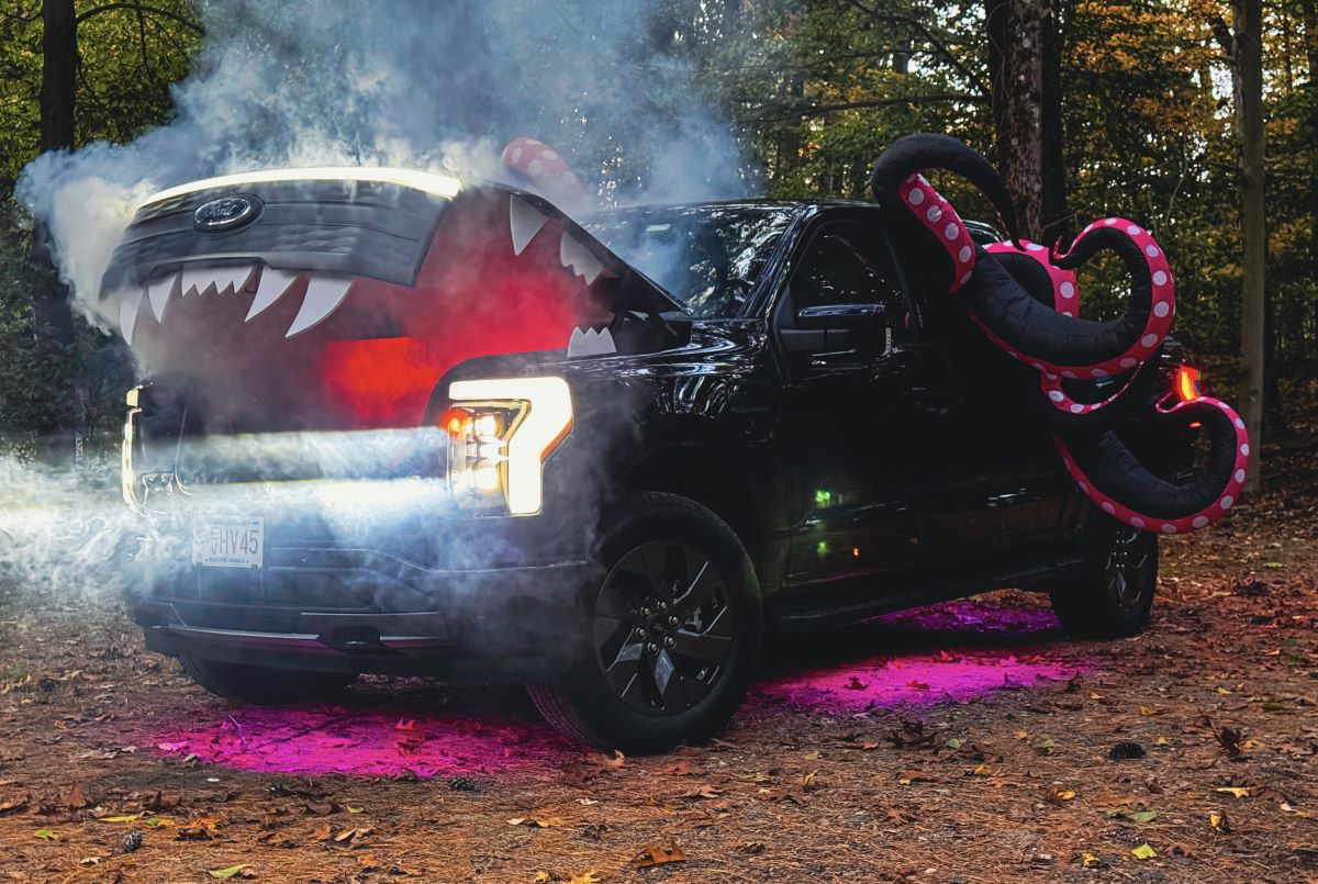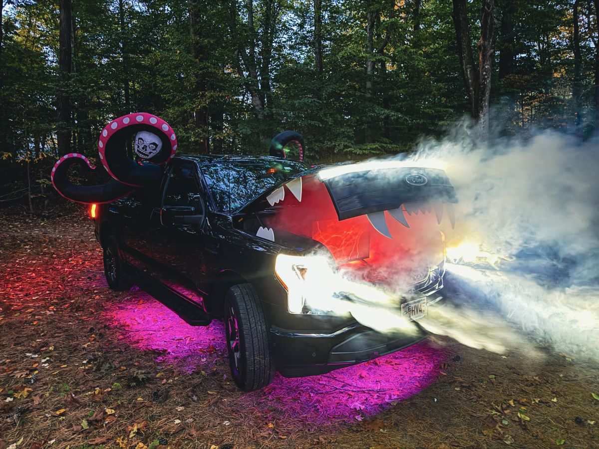 McManus está aprovechando al máximo Pro Power Onboard, así como todos los enchufes disponibles en el Mega Power Frunk de la camioneta, para una nueva creación espeluznante de Halloween.